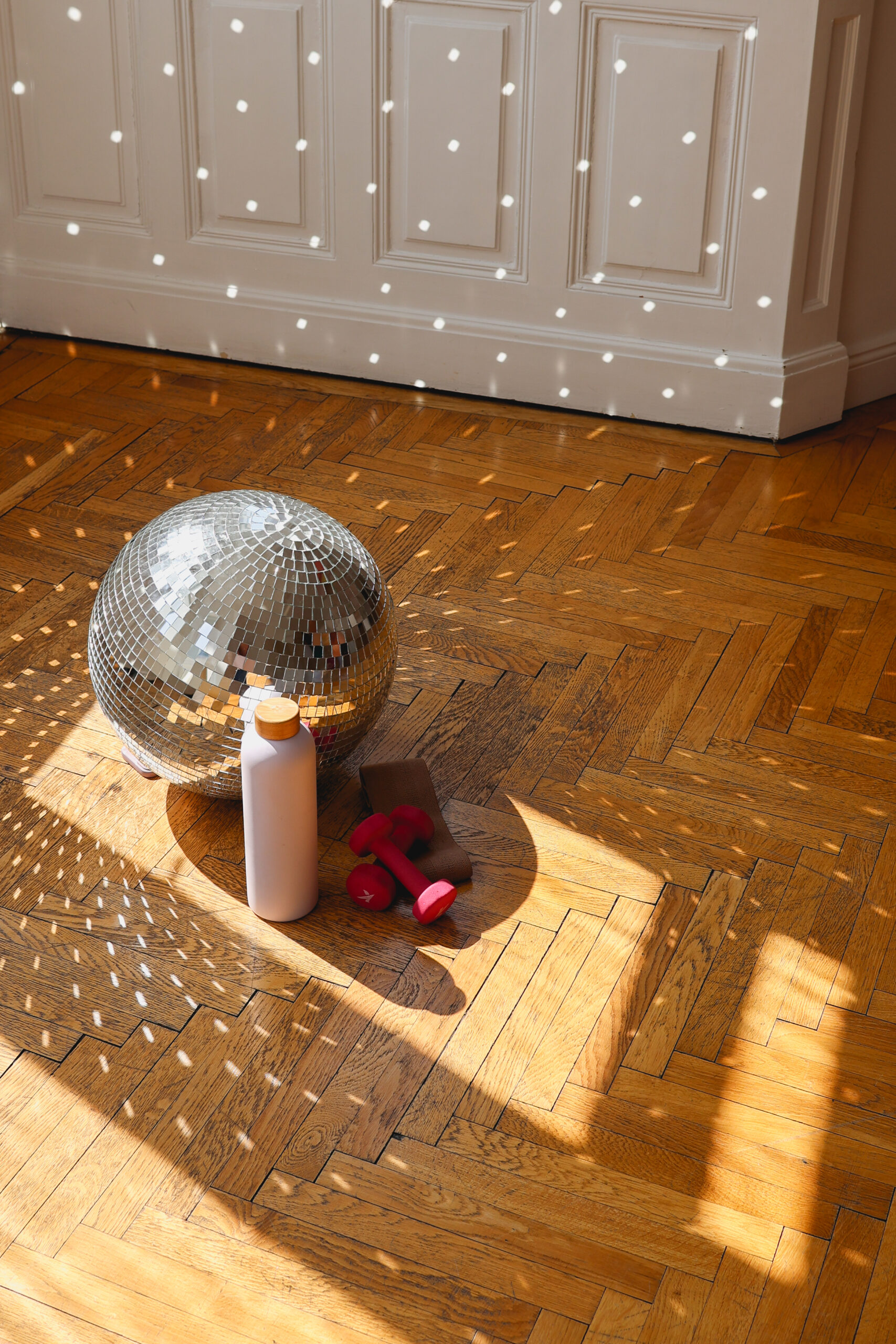 Mitzubringen: Wasserflasche, (Yoga-)Matte, Hanteln, Booty Band, Handtuch sowie Sportkleidung und -schuhe